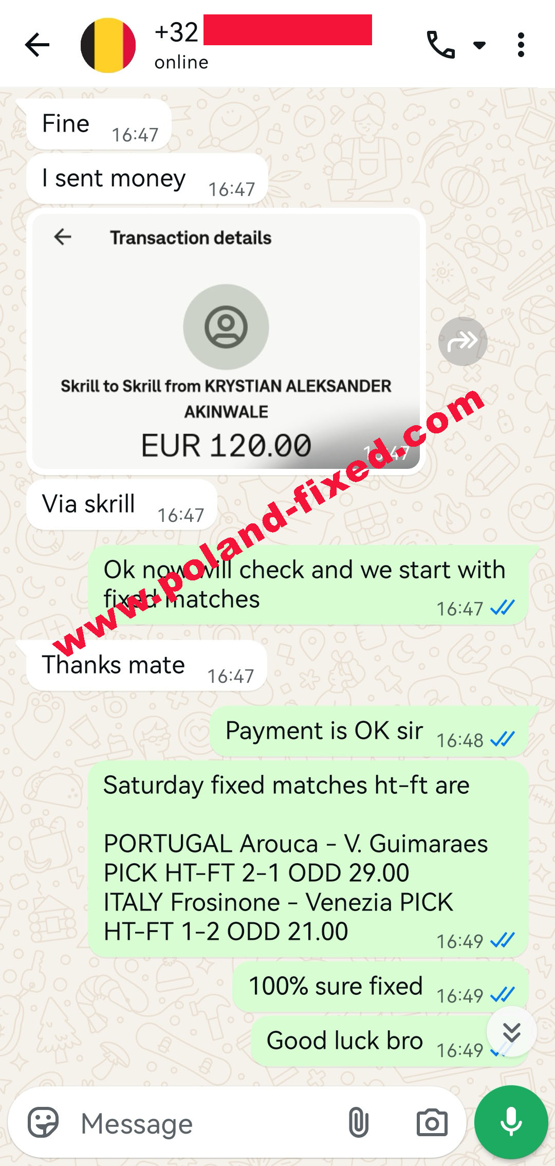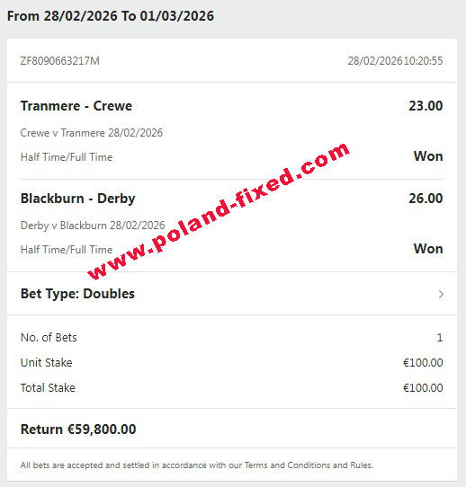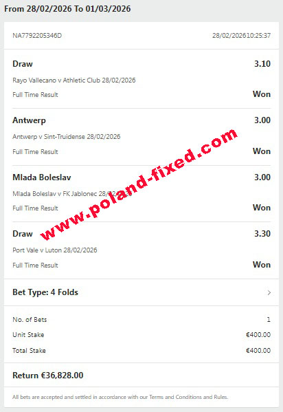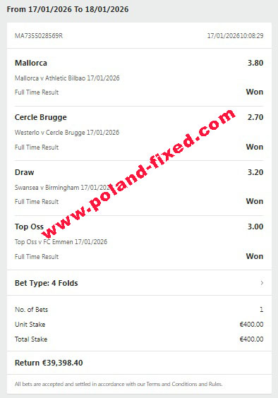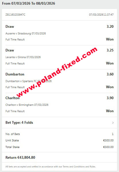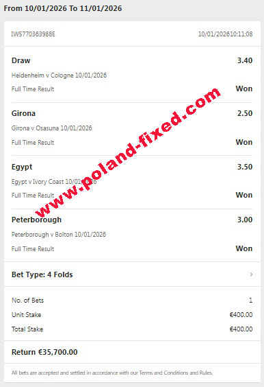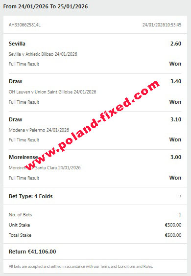 Dear customer, welcome to Poland-fixed.com. We are here for you, correct and verified site for selling fixed matches 100% sure.