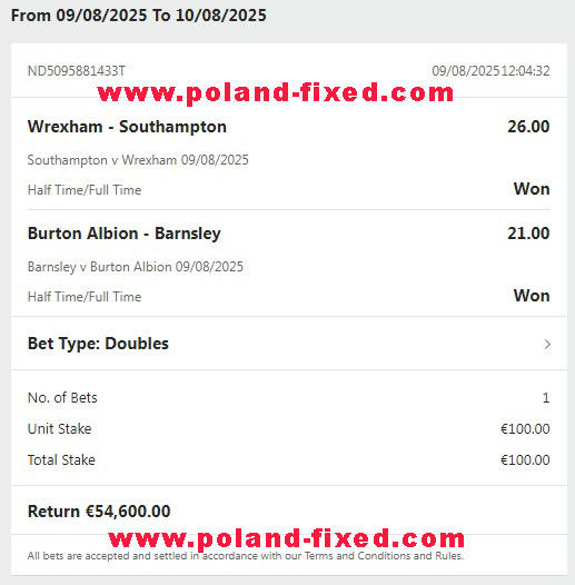 Again, thanks to the second half we work with, we are also presenting our second offer. Half Time / Full Time from Secret Agents, our agents offered to work 24/7 to win these fixed matches. It is very difficult to get these fixed games, as they require a lot of attention and analysis, you also need to have people in the clubs to get the same fixed games. We have it all and we can complete this offer for you. We offer you two fixed matches (as much as our company allows), with which you can make a good profit in a short period of time. As I have already mentioned the matches are quite well analyzed and your profit with us will be guaranteed and secure.